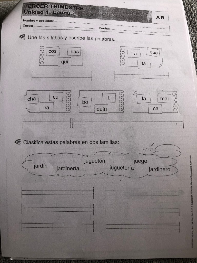 En este apartado del blog os dejaremos la tarea que hay que hacer al día, estas dos fichas son de hoy día 16 de marzo: